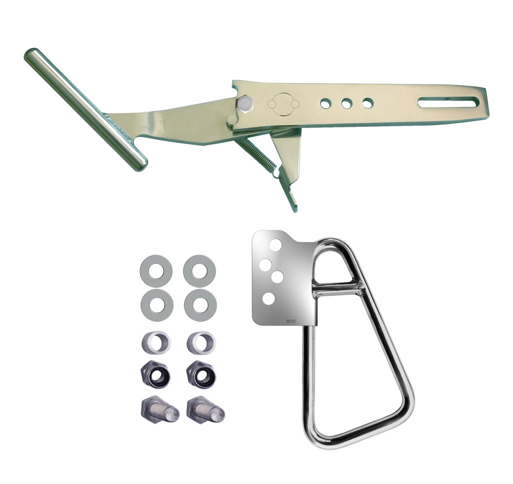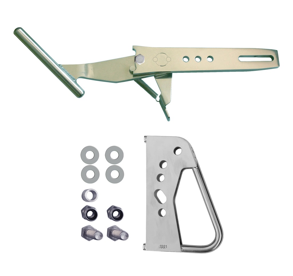 The aluminium L & R Boat Latch Kit is available with optional extras, the Wedge Plate Kit or the Roller Extender Kit. The Wedge Plate Kit can help you adjust the angle the snare meets the latch. And the Roller Extender is used where the roller needs to be able to reach further to the bow for installation.